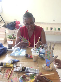 Los talleres que se han aprobado se desarrollarán en el Centro de Formación y Biblioteca del Municipio de Ramón Santana, donde Justalegría colabora en la Promoción y Equipamiento del mismo, durante todo este año. Noelia, Tesorera de la Asociación concentrada en sus delicadas pinceladas