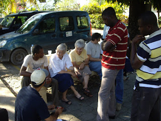 Las Hermanas de Cristo Rey conversando con voluntarios Haitianos y Dominicanos