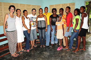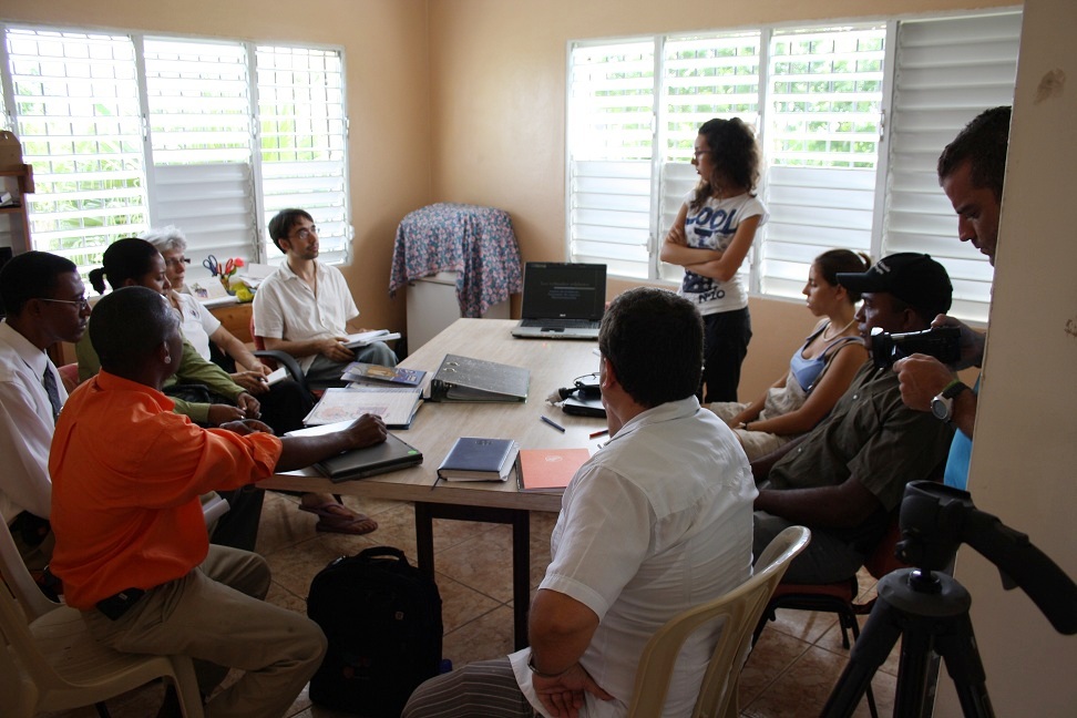 Salva Navas, Lourdes López, Alfonso Cano y Eva C.Carvajal en el Centro Comunitario del Batey Monte Coca en plena acción. Gracias a ellos Justalegría tendrá su primer documental.